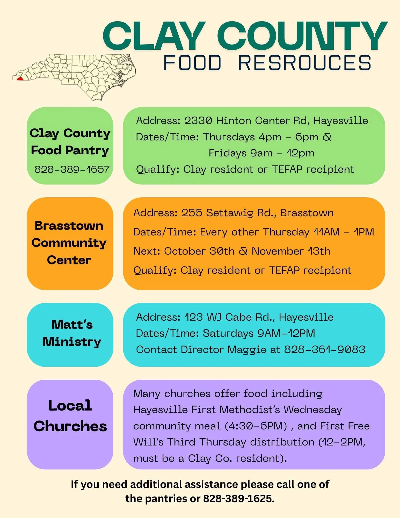 The NC Cooperative Extension of Cherokee County has also put together a Food Resource Guide that includes a list of free food distribution sites.